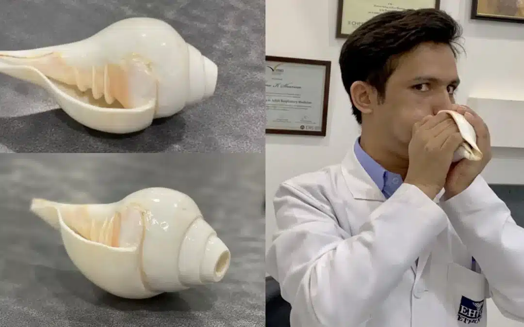 Eine kleine, aber viel beachtete randomisierte Studie mit 30 Erwachsenen untersuchte die Wirkung des Muschelblasens auf Schlafapnoe-Symptome. Die Teilnehmer übten regelmäßig über mehrere Wochen das Shankha-Blasen.